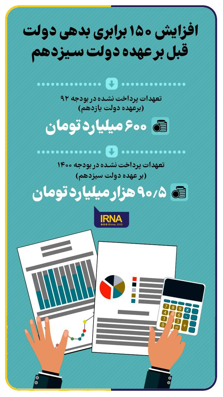 افزایش ۱۵۰ برابری بدهی دولت قبل برعهده دولت سیزدهم