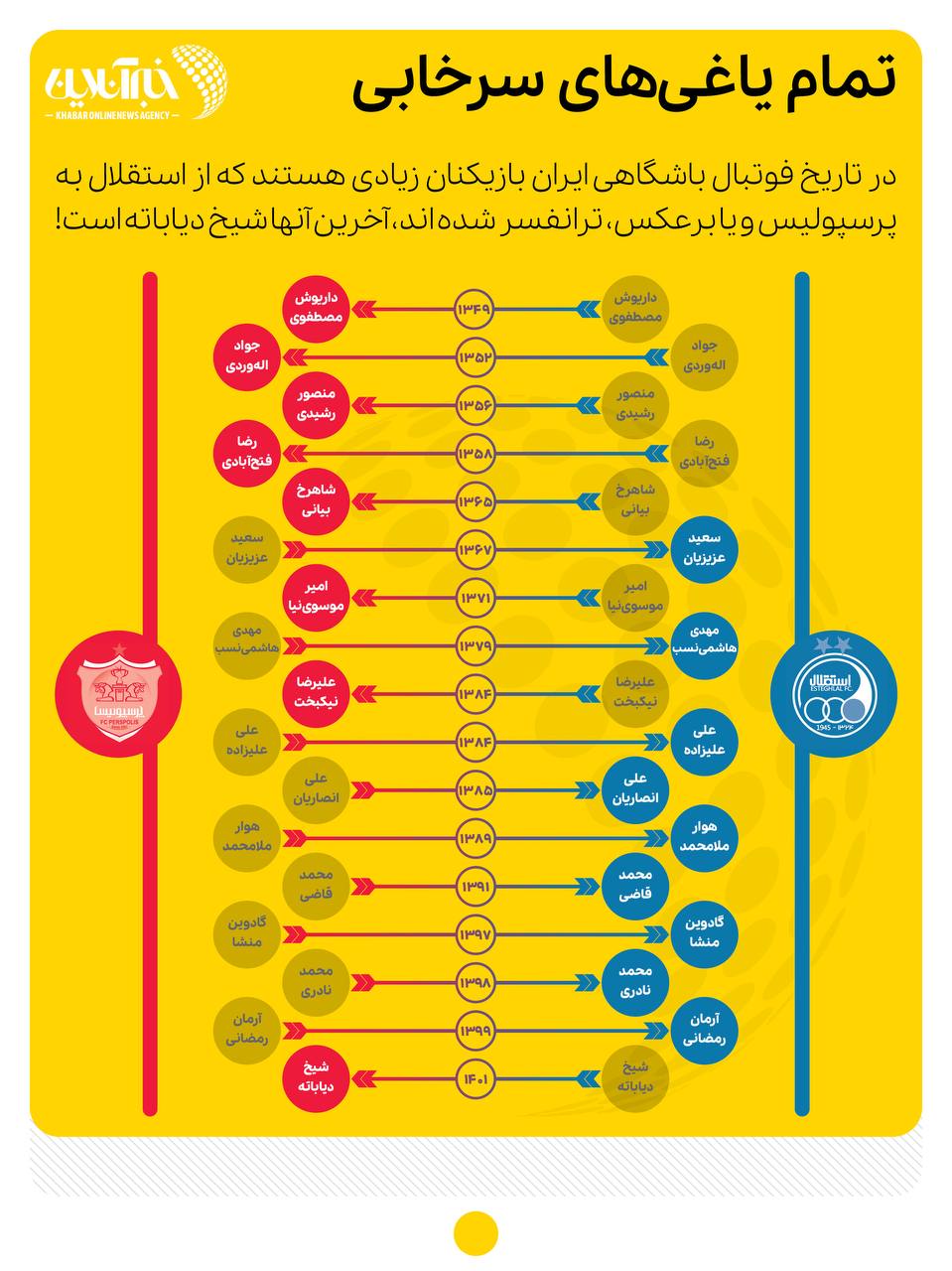در تاربخ فوتبال ایران بازیکنان زیادی هستند که از استقلال به پرسپولیس با برعکس، ترانسفر شدند که آخرین آنها شیخ دیاباته است.پر