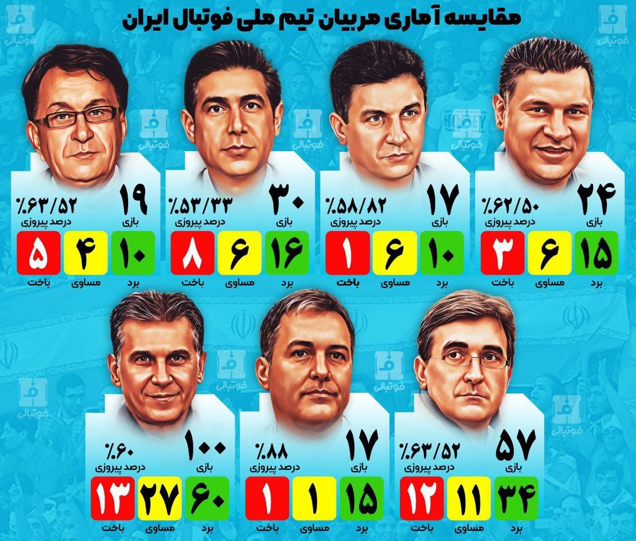 مقایسه آماری مربیان تیم ملی فوتبال ایران