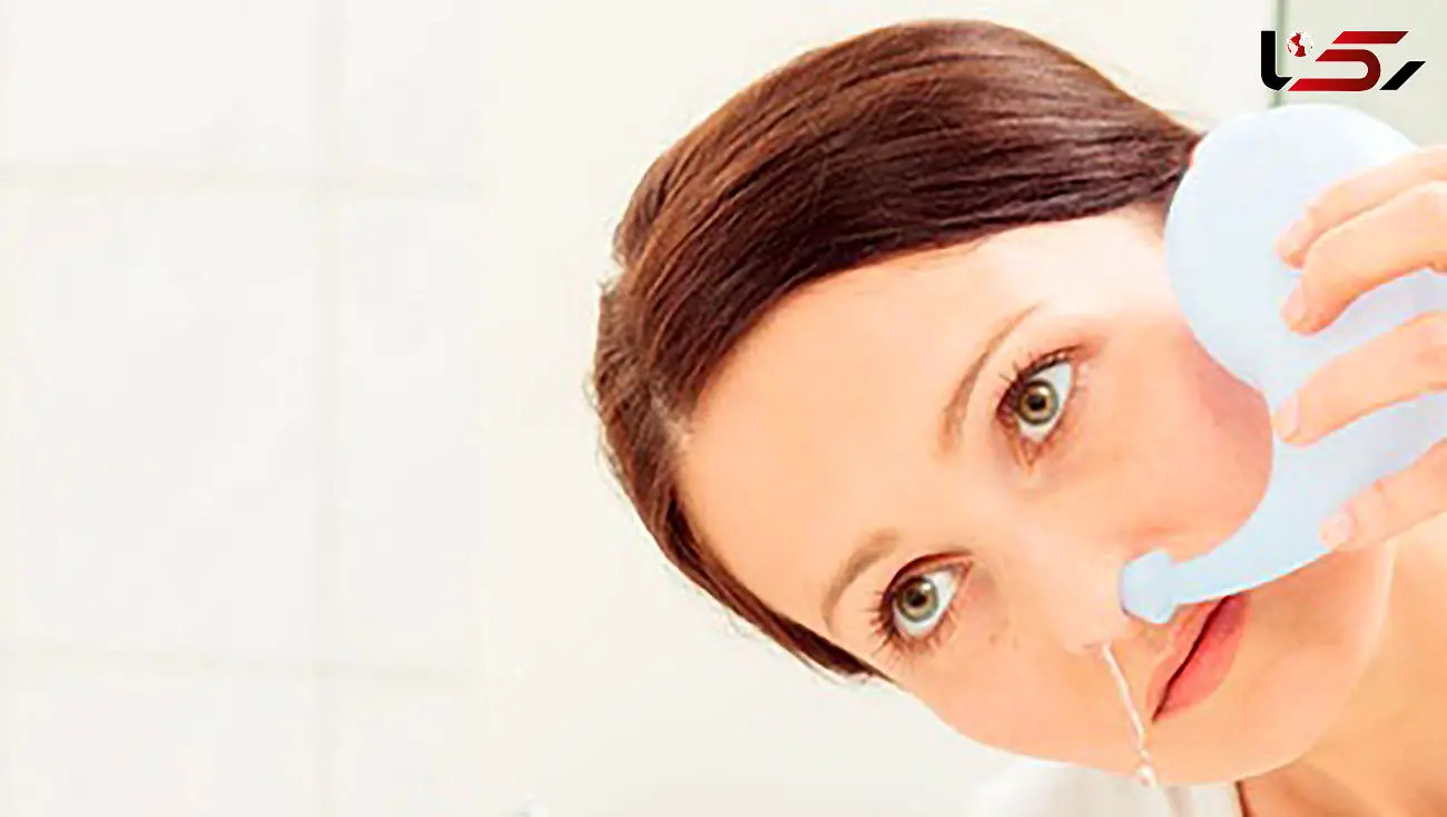 این روش را میتوان در خانه با مخلوط کردن نیمقاشق چایخوری نمک و جوش شیرین در یک فنجان آب جوشانده یا مقطر استفاده کرد. سپس حفره بینی را با یک بطری شستوشوی سینوس خارج نمود.