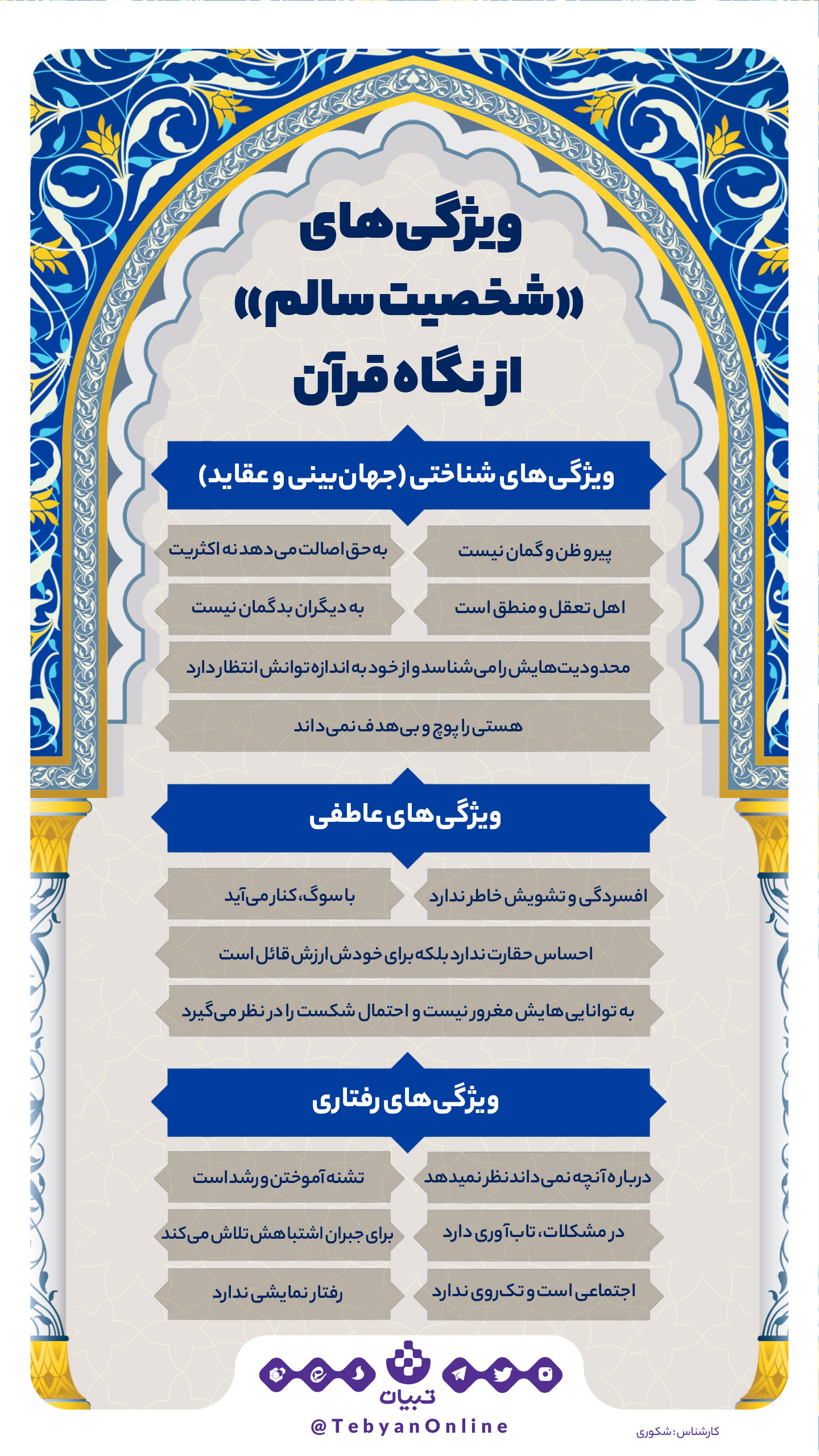 اگه نگاهی به کتاب خدا بندازیم لا به لای آیاتش میتونیم ویژگیهای شخصیت سالم رو پیدا کنیم از نداشتن رفتار نمایشی تا بدگمان نبودن نسبت به دیگران