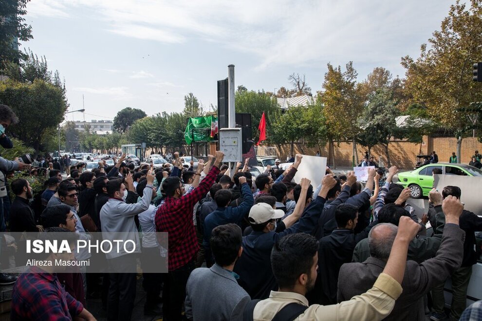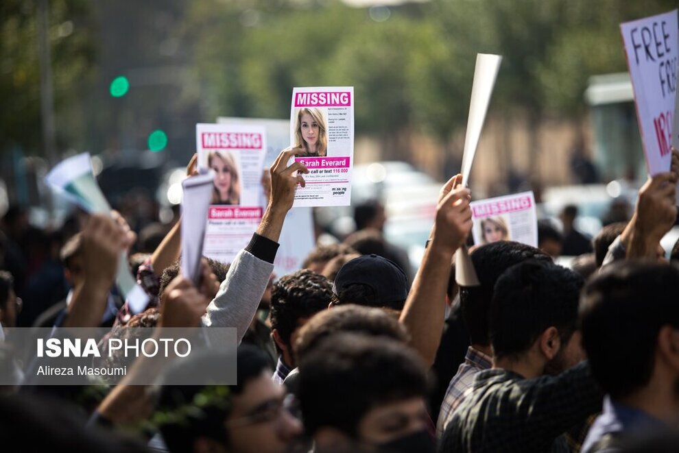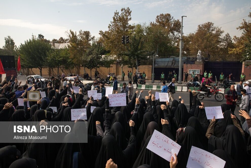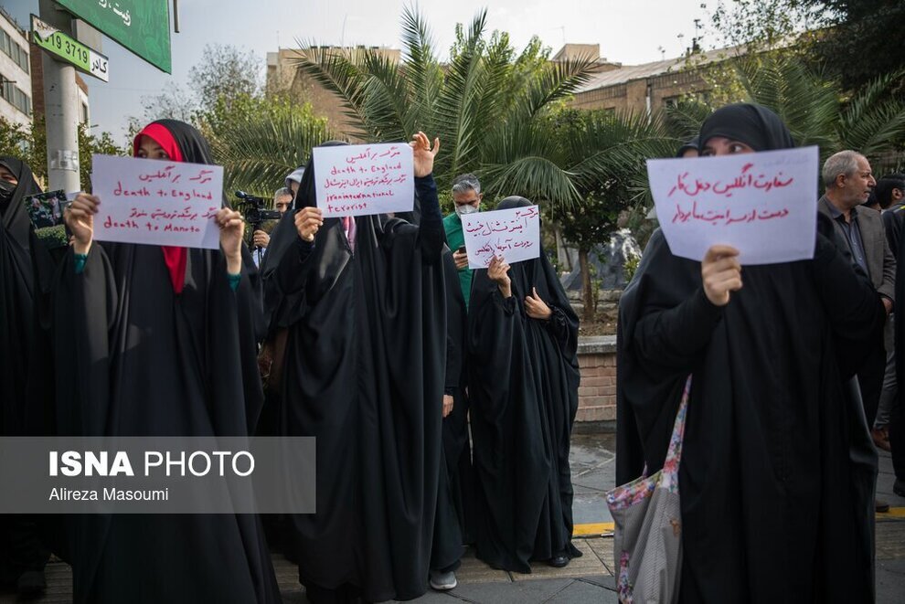 جمعی از دانشجویان دانشگاههای تهران پنجشنبه ۵ آبان ماه مقابل سفارت انگلیس در تهران تجمع کردند. این دانشجویان با در دست داشتن پلاکاردهایی به حمایت دولت انگلیس از رسانههای حامی ناآرامیهای اخیر در ایران اعتراض داشته و علیه آن شعار سر دادند.