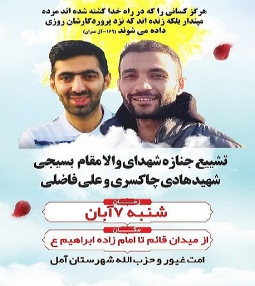 مراسم تشییع پیکر شهدای حمله تروریستی شهر آمل شنبه هفتم آبان ماه در آمل برگزار میشود.