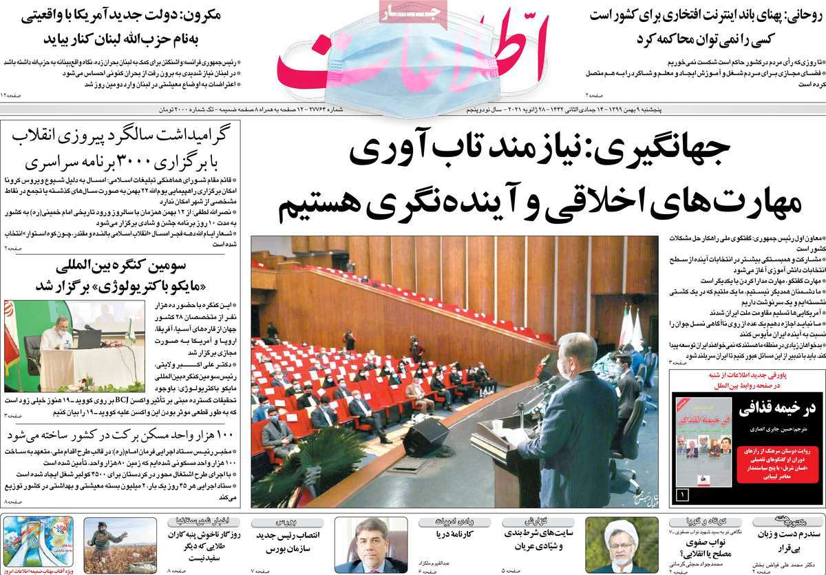 به گزارش ایسنا، صفحه نخست تعدادی از روزنامههای کشور را در روز پنجشنبه ۹ بهمن مشاهده میکنید: