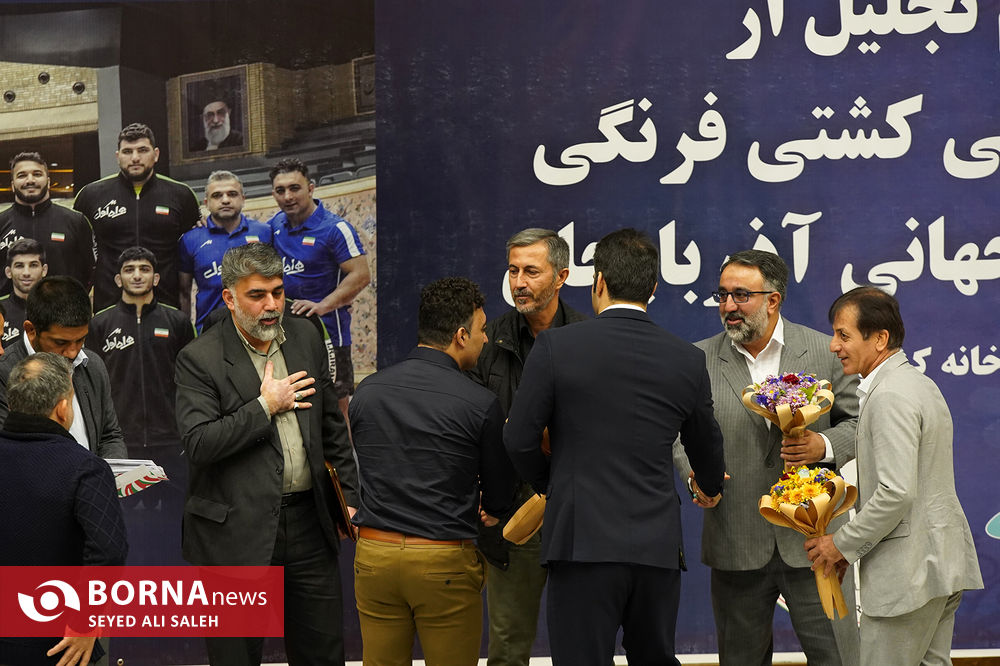 مراسم تجلیل از تیم ملی کشتی فرنگی با حضور اسماعیل احمدی مشاور وزیر و رئیس حوزه وزارتی و همچنین میرجلیلی مسئول بسیج ورزشکاران و علیرضا دبیر رئیس فدراسیون کشتی در سالن شهیدصدرزاده برگزار شد.