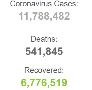 بر اساس آمار وزارت بهداشت جهانی تاکنون ۵۴۱,۸۴۵ نفر در پی ابتلاء به بیماری کرونا جان خود را از دست دادند.
