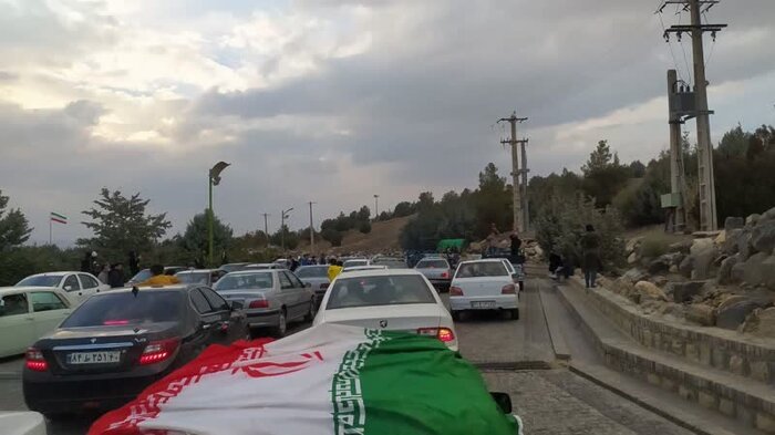 همدان- ایرنا - پس از پایان بازی تیم ملی فوتبال کشورمان در برابر تیم ولز که با برد ۲ بر صفر ملی پوشان کشورمان همراه بود، مردم شهرهای مختلف استان همدان با حضور در خیابان های شهر و برافراشتن پرچم مقدس جمهوری اسلامی ایران به شادی پرداختند.