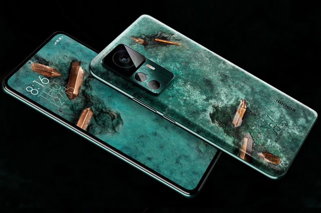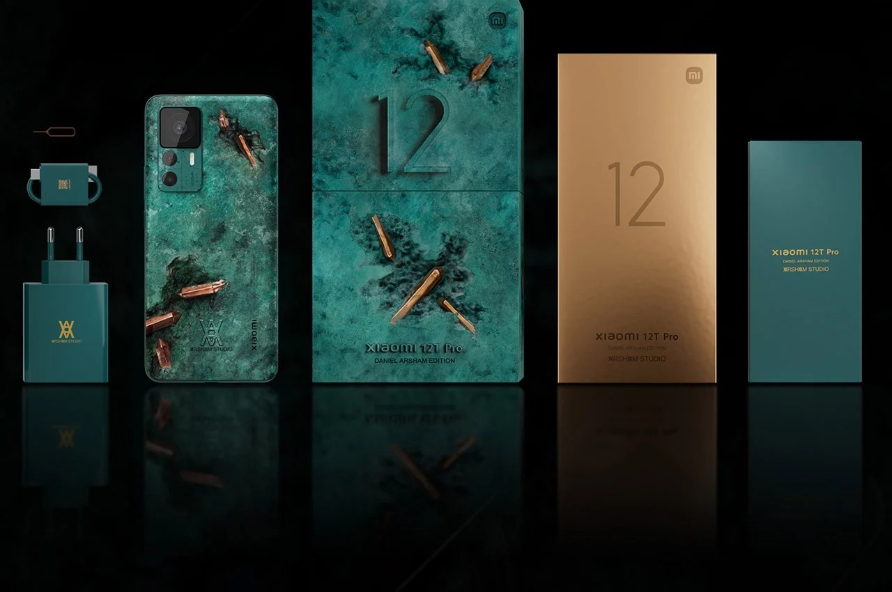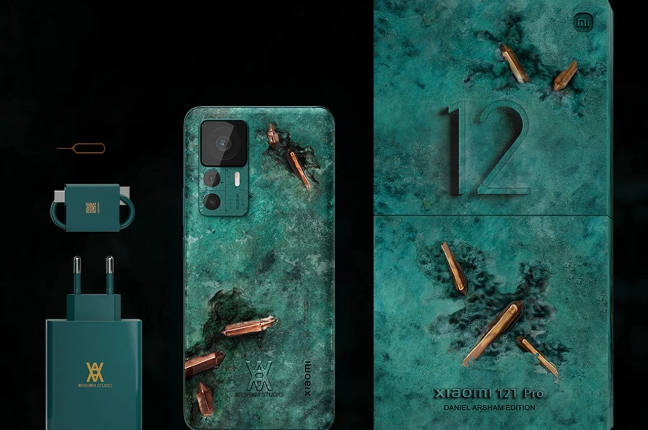 این نسخه تولید محدود از شیائومی 12تی پرو (Xiaomi 12T Pro) با همکاری دنیل آرشام (Daniel Arsham) هنرمند آمریکایی، شکل گرفته است. طراحی خیره کننده این گوشی هوشمند با رنگ سبز زنگاری و کریستال های برنزی، نگاه هر بیننده ای را به سوی خود جلب می کند.
