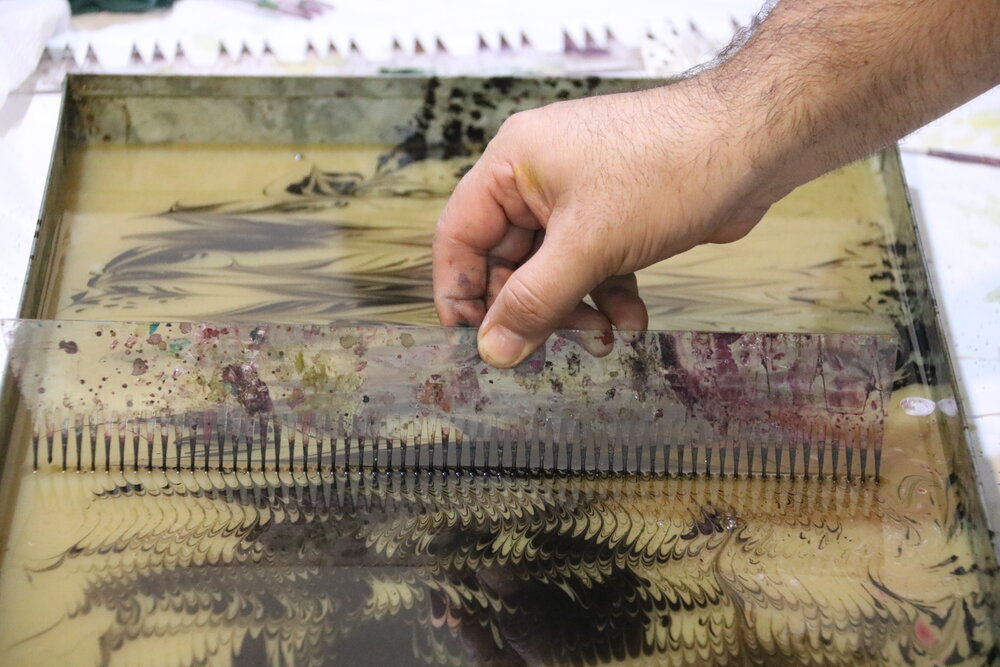 کارگاه ساخت کاغذ ابر و باد به همت حوزه هنری کرمانشاه با حضور علاقمندان به هنر تذهیب برگزار شد.