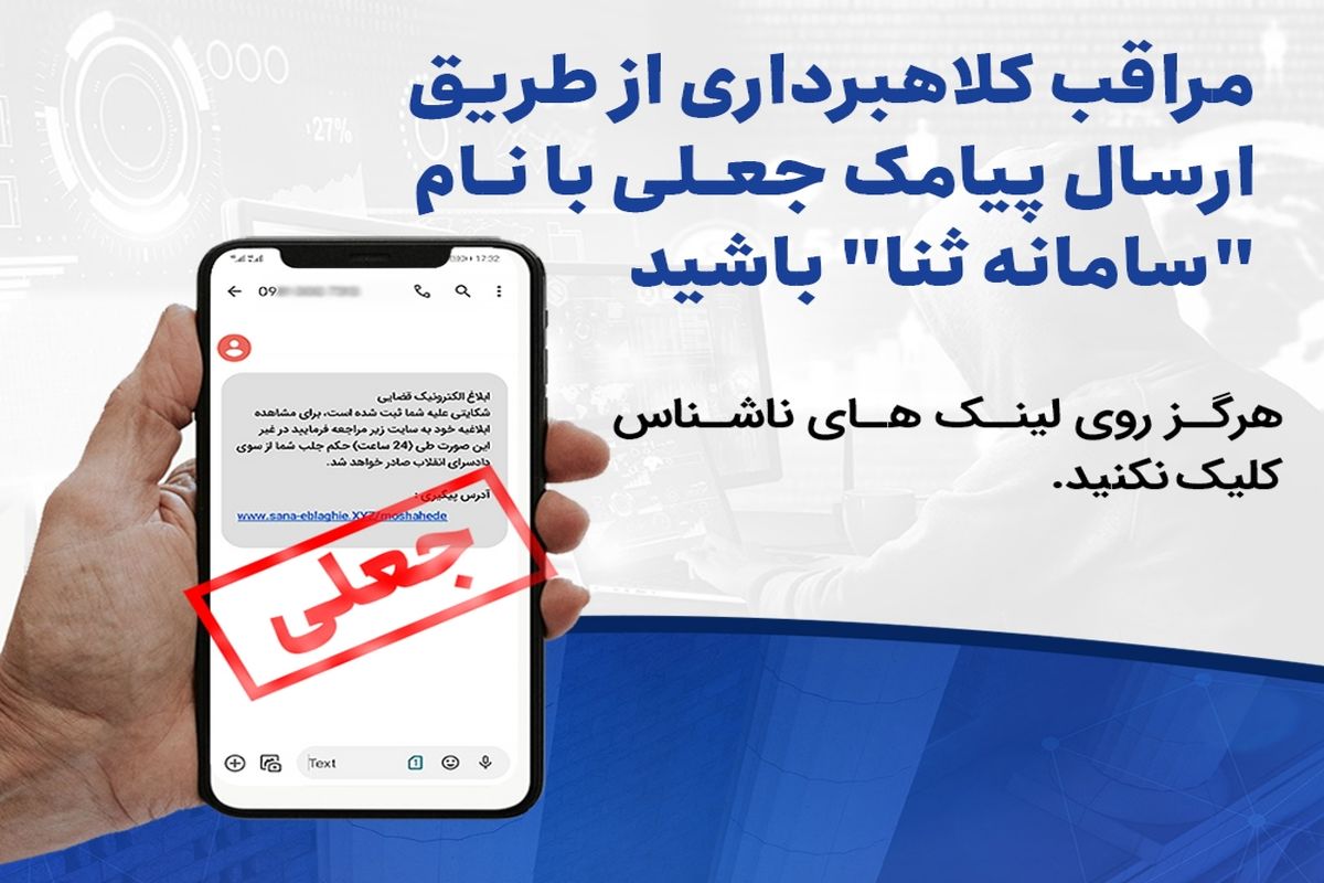 سید مهدی عمران فر ،سرپرست پلیس "فتا" کهگیلویه و بویراحمد با اشاره به اینکه در این روش از کلاهبرداری فرد کلاهبردار با جعل آدرس اینترنتی سامانه ثنا پیامکی با محتواهایی نظیر ابلاغیه، ثبت شکایت در سامانه و… که درنهایت به یک لینک پرداخت برخط منتهی میشود برای شهروندان ارسال میکنند، افزود: از آنجایی که برخی از شهروندان از این سامانهها و نحوه فعالیت آنها آگاهی ندارند و مبلغ عنوانشده نیز بسیار ناچیز است روی لینک کلیک کرده و اقدام به عملیات پرداخت وجه میکنند.