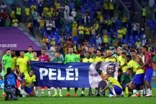 در این بنر که روی آن تصویر و نام پله درج شده بود، بازیکنان برای این فوق ستاره برزیل آرزوی سلامتی کردند تا نشان دهند به فکر پله که یکی از بزرگان تاریخ فوتبال است، هستند.