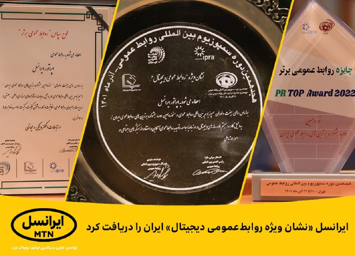 ایرانسل همچنین، به دلیل رعایت استانداردهای حرفهای (علمی-صنفی) و مدیریت راهبردی روابط عمومی، خلاقیت در کار و داشتن کیفیت و کمیت مناسب فعالیتها در موضوع ارتباطات الکترونیکی و مجازی، تندیس و لوح «جایزه ملی روابط عمومی برتر» را از «نوزدهمین دوره جشنواره برترینهای روابط عمومی ایران» دریافت کرد.