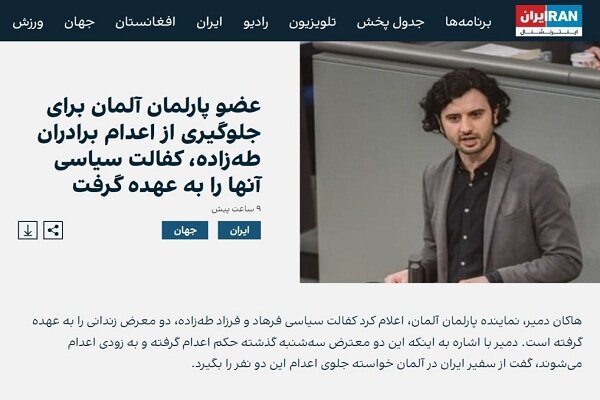 هاکان دمیر نماینده پارلمان آلمان در توئیتر نوشت: «من کفالت برادران فرزاد طه زاده و فرهاد طه زاده را به عهده میگیرم. آنها قرار است فردا (چهارشنبه) اعدام شوند. آنها سهشنبه هفته پیش محکوم شدند. من از سفیر ایران میخواهم این اعدامها را متوقف کند!».