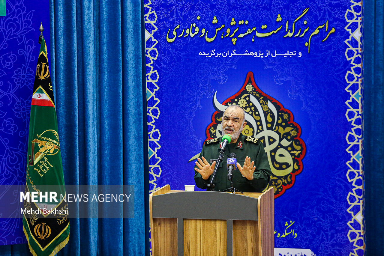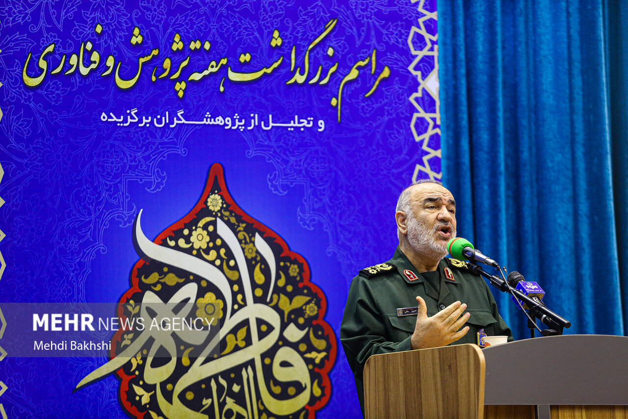 همایش کشوری هفته پژوهش و تجلیل از پژوهشگران برگزیده با حضور سردار سلامی فرمانده کل سپاه در دانشکده عقیدتی سیاسی شهید محلاتی قم برگزار شد.