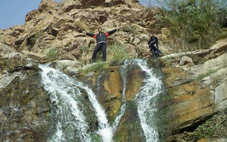 بعد از گذشت تقریبا پنج دقیقه پیاده روی از داخل روستا از یک پل ماشین رو که در طرف راست قرار دارد عبور کرده ، بعد از قرار گرفتن در مسیر باغها راه اصلی را ادامه داده و بعد از گذشتن 10 دقیقه به دو راهی رسیده که سمت راست آن به رودخانه میرسد در صورت کم آب بودن رودخانه از آن گذشته و با حرکت در جهت خلاف جریان آب به سمت محل تلاقی رودخانهها و بعد به سمت آبشار میرسيد.اما راه سمت چپ کمی بالاتر از پای کوه گذشته و به همان محل تلاقی رودخانهها میرسد.