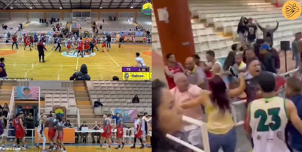 فرارو: یک بازی بسکتبال در لیگ دسته دوم پورتوریکو، به درگیری شدید بین بازیکنان دو تیم پایان یافت. در آخرین لحظات پایان بازی خاویر تورس بازیکن آجونتاس به صورت یکی از بازیکنان سالیناس مشت زد. در حالی که بازیکنان هر دو تیم ضربات خود را رد و بدل میکردند، هواداران به سرعت به زمین هجوم میبردند.