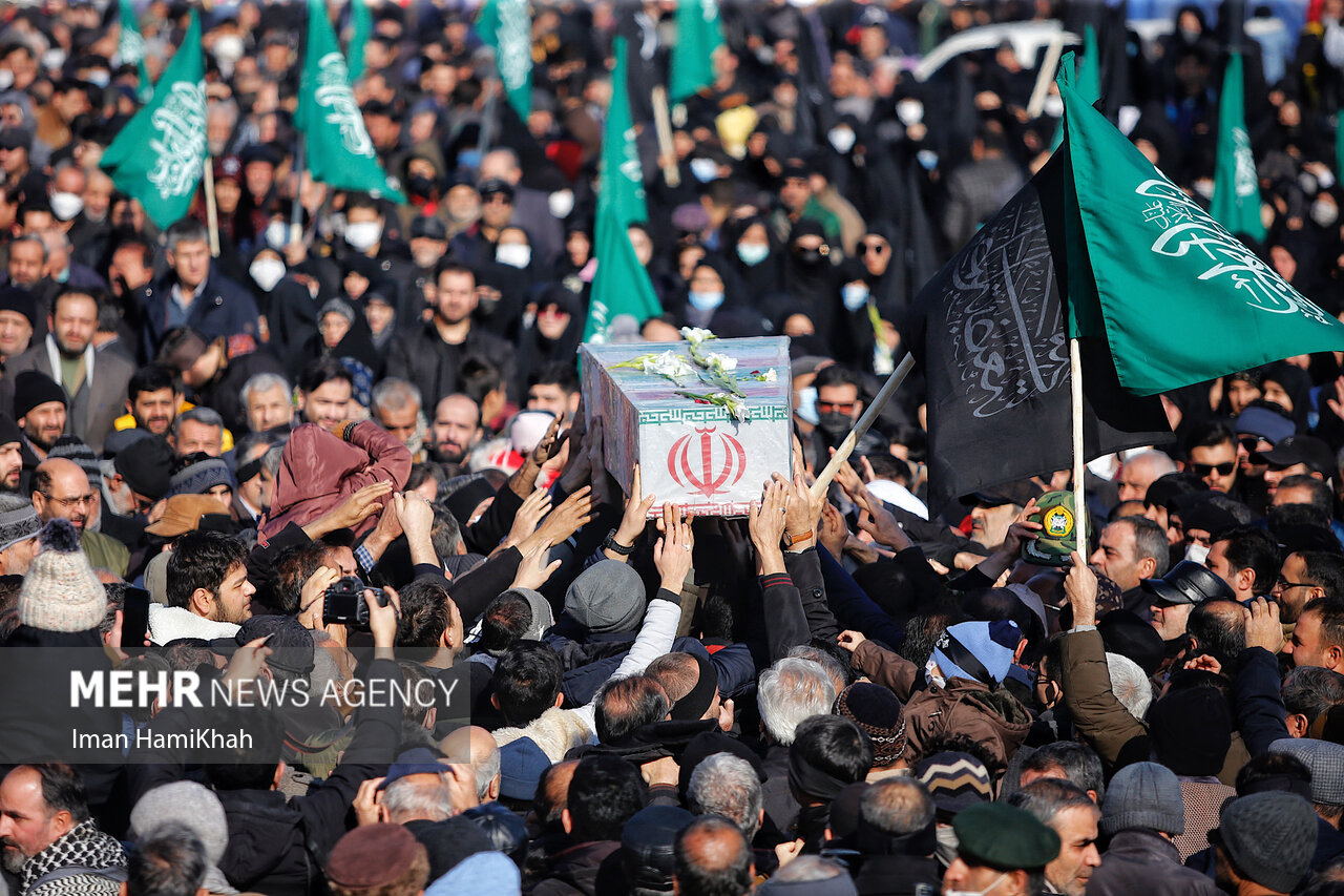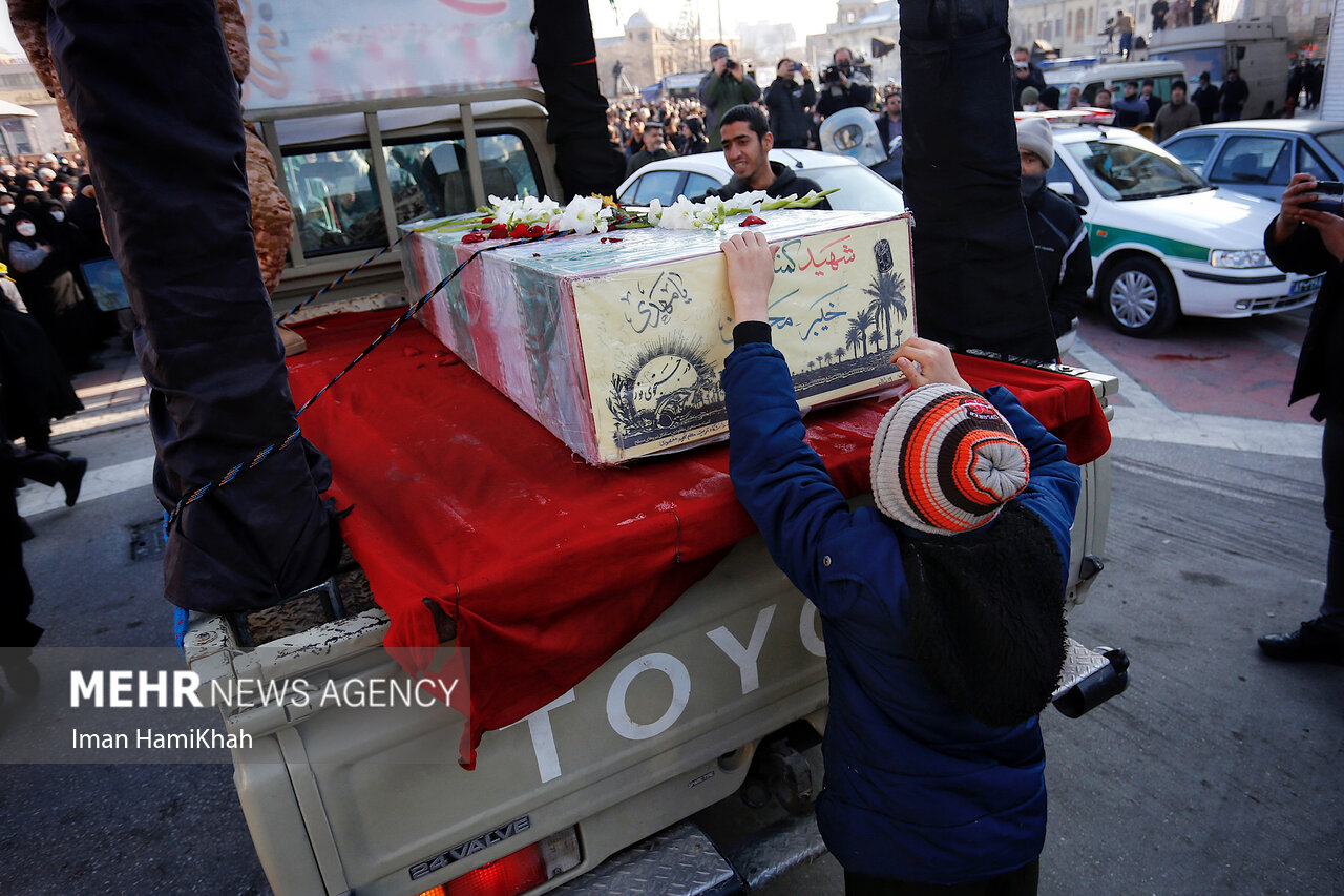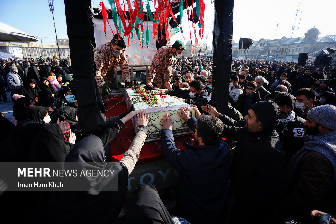 آئین تشییع سه شهید گمنام دفاع مقدس صبح امروز در میدان امام شهر همدان برگزار شد.