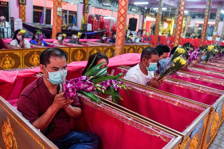 خوابیدن در تابوت و دعا کردن برای خلاصی از شر و بدشانسی و شروعی دوباره در سال جدید در معبد "نونتابوری" در حومه شهر بانکوک تایلند/ رویترز