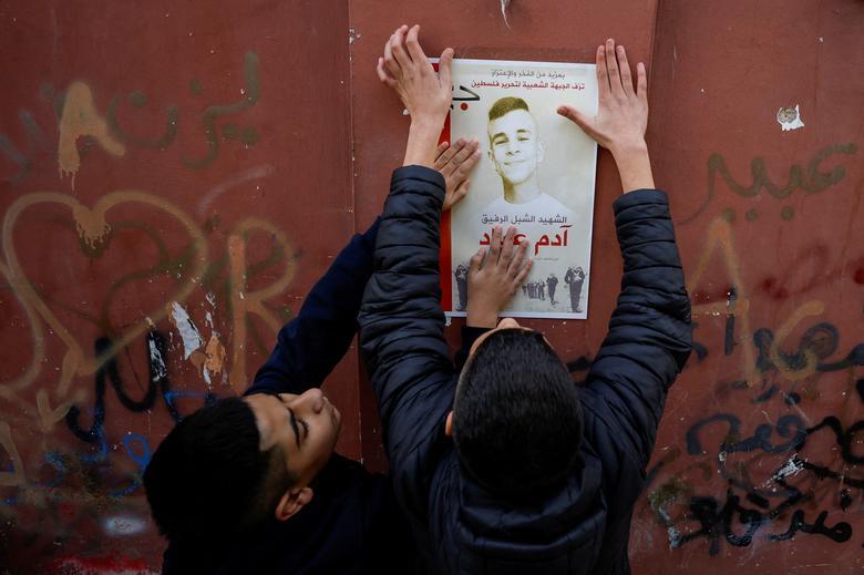 الصاق اعلامیه فوت یک نوجوان فلسطینی به دیوار در شهر بیت لحم. نوجوانی که به ضرب گلوله نیروهای اسراییل به شهادت رسیده است./ رویترز