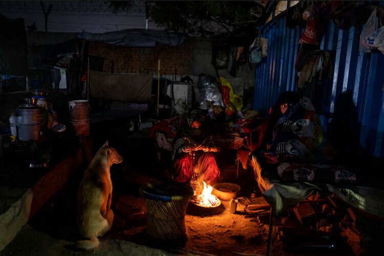 آتش روشن کردن خانواده های بی خانمان شهر دهلی هند در شب سرد زمستانی/ آسوشیتدپرس