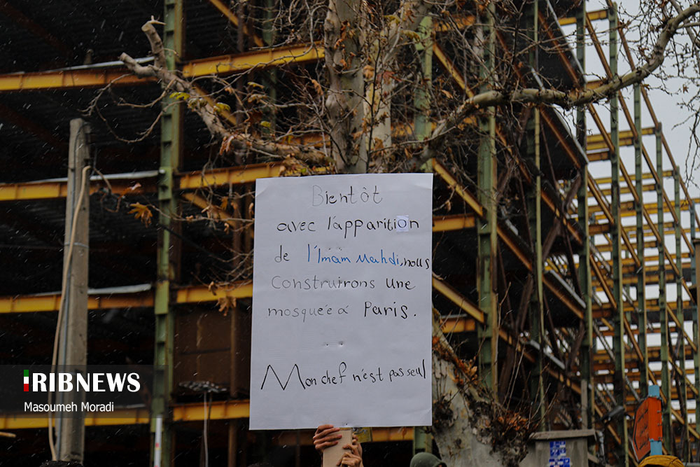 عصر امروز چهارشنبه ۲۱ دی ماه ۱۴۰۱ تجمعی مردمی مقابل سفارت فرانسه در اعتراض به اقدام هتاکانه نشریه فرانسوی دراهانت به مقدسات دینی برگزار شد. شرکت کنندگان در این تجمع خواستار برخورد حقوقی و قانونی با عاملان و حامیان توهین به مقدسات اسلامی شدند.