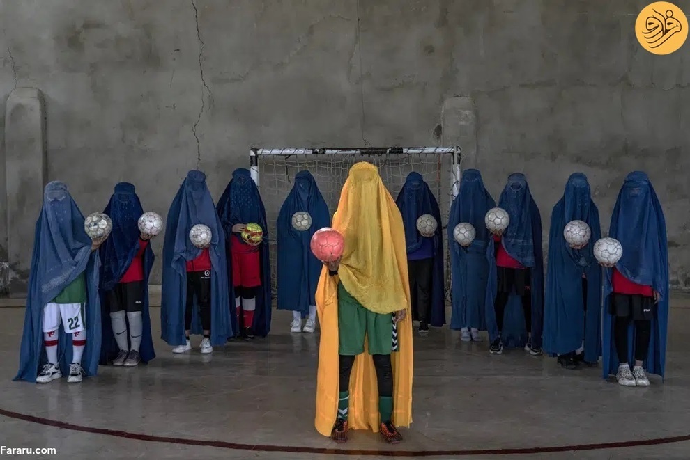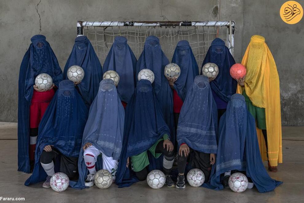تعدادی از دختران افغان با تجهیزات ورزشی که دوست داشتند عکس پرتره گرفتند. اگرچه آنها لزوماً در زندگی عادی برقع نمیپوشند، اما ترجیح دادند هویت خود را پشت برقعها پنهان کنند زیرا از انتقامجویی طالبان میترسند.