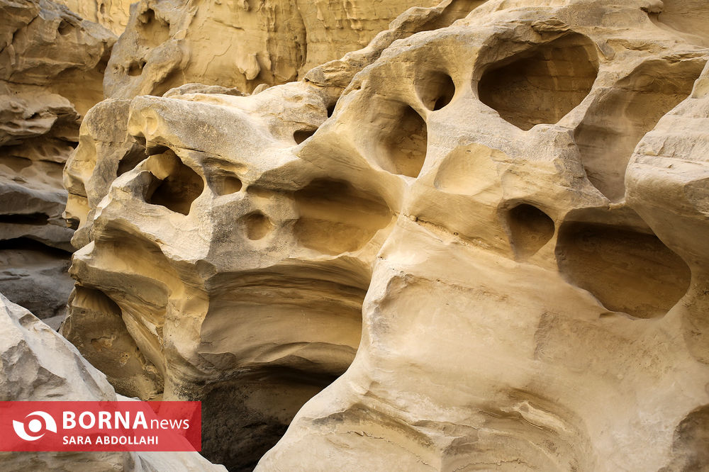 درۀ چاهکوه به عمق ۱۰۰ متر نمایشی از فرسایش سنگهای رسوبی است که دارای حفرهها، دالان ها و اشکال اعجابآور می باشد . گفته میشود علت شهرت این دره به نام چاهکوه به دلیل وجود سه یا چهار چاه در دل آن است که در زمانهای دور به دست اهالی روستای چاهو شرقی برای تأمین آب شیرین کنده شدهاست . باد، آب باران و بارشهای سیلآسا و شدید از مهمترین دلایل وجود این حفرههای زیاد در میان دیواره چاهکوه است. سنگهای چاهکوه دارای آهک یا بی کربنات کلسیم است که اسید آب باران دلیل حل شدن آنها و ایجاد شکافها و حفرههای کوچکی در میان آنها شده و این حفرهها در طول چند میلیون سال بزرگتر شده و تبدیل به دالانههایی شدهاند.