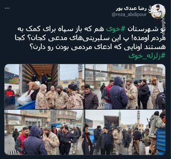 کاربران توئیتری در فضای مجازی نسبت به حضور نیروهای نظامی از جمله سپاه در این مناطق واکنش نشان داده و تصاویر خدمترسانی آن ها به زلزله زدگان را منتشر کردند.