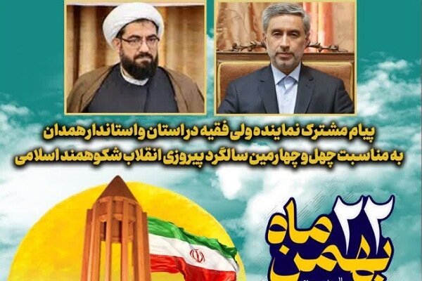 در آستانه چهل وچهارمین سالگرد این عید بزرگ، بر این باوریم که حضور پر شور و با صلابت مردم مؤمن، انقلابی، ولایتمدار و همیشه در صحنه استان همدان در راهپیمایی ۲۲ بهمن همچون همیشه وحدت و یکپارچگی این استان را در کشور مثالزدنی خواهد کرد.