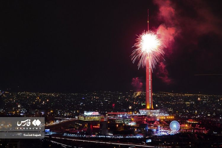 مراسم نورافشانی ویژه چهل و چهارمین سالگرد پیروزی انقلاب اسلامی شامگاه جمعه ۲۱ بهمن ۱۴۰۱ در سراسر پایتخت به ویژه برج میلاد تهران برگزار شد. منبع: فارس