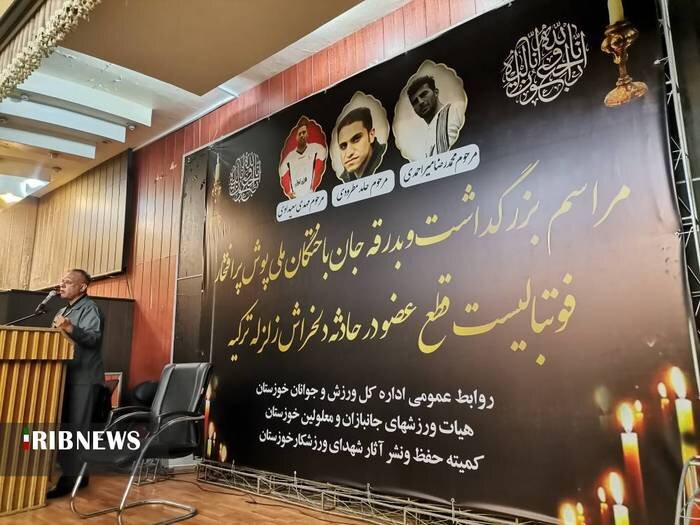 وداع با فوتبالیستهای خوزستانی قطع عضو تیم ملی کشور امروز در ورزشگاه تختی اهواز برگزار شد. حامد مطرودی، مهدی سعیداوی و محمدرضا میراحمدی عضو تیمهای باشگاهی فوتبال ترکیه بودند که در زلزله اخیر این کشور جان خود را از دست دادند. پیکر این ورزشکاران در شهرستانهای محل سکونت آنها به خاک سپرده میشود.