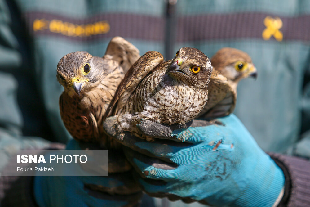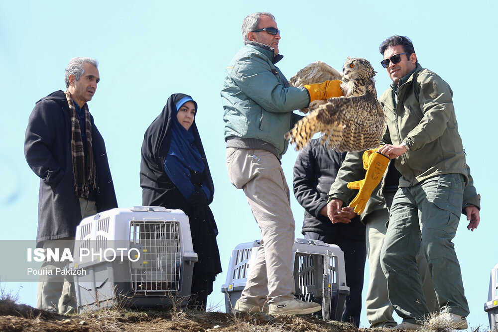 دوازده بهله پرنده شکاری بهبود یافته و تیمار شده، توسط اداره کل محیط زیست چهارشنبه ۱۰ اسفند در دامنه کوه الوند همدان رهاسازی و به دامن طبیعت بازگردانده شدند. منبع: ایسنا