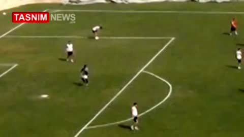 علیرضا بیرانوند با یک ضربه توپ را به داخل سبد بسکتبالی که کنار زمین بود انداخت.