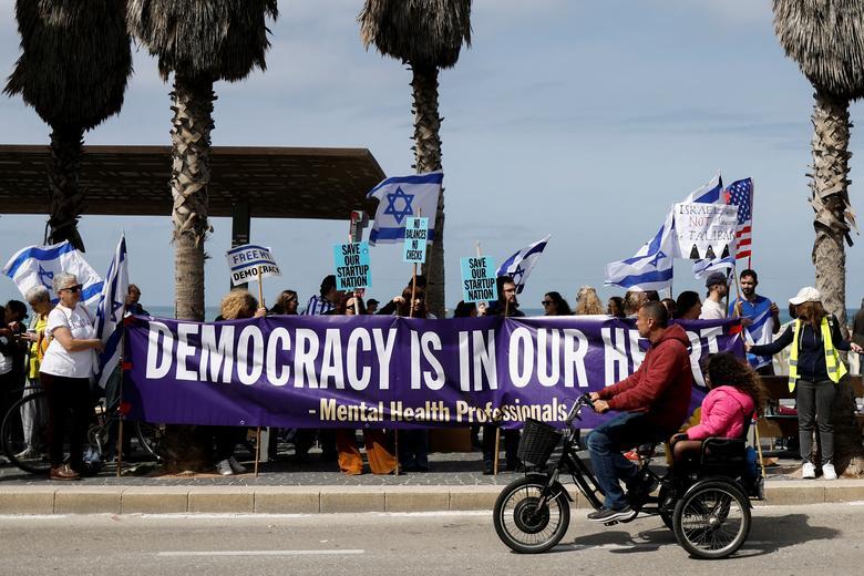 تظاهرات مخالفان نتانیاهو در مقابل کنسولگری ایالات متحده آمریکا در شهر تل آویو/ رویترز