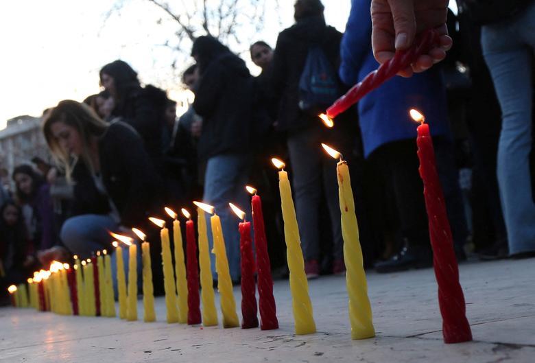 مراسم روز جهانی زن در شهر دیاربکر ترکیه با روشن کردن شمع به یاد قربانیان زلزله مهیب اخیر در ترکیه/ رویترز
