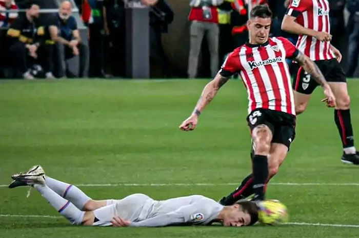 در نیمه اول بازی گاوی هافبک جوان و آینده دار بارسلونا یک حرکت خاص را از خودش به نمایش گذاشت. او در حالی که توپ ارتفاع زیادی از سطح زمین نداشت، آن را با ضربه سر از مقابل گارسیا زد و به این ترتیب مانع از آن شد که بازیکن اتلتیک بیلبائو به توپ برسد و آن را جلو ببرد.