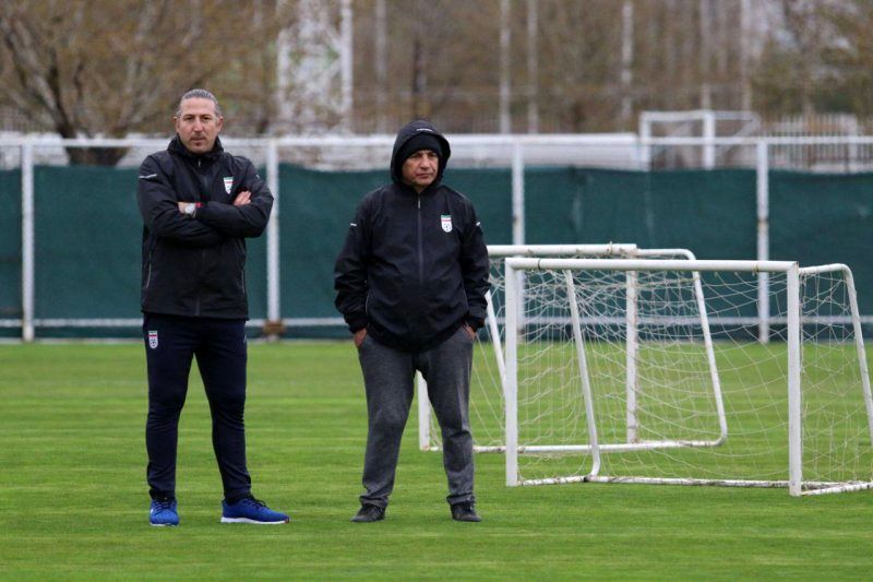 مربی جدید تیم ملی، هنگام حضور در زمین چمن نیز، از کنار قلعهنویی تکان نخورد و اینگونه آخرین تمرین بازیکنان ایران قبل از بازی با روسیه را زیر نظر گرفت.