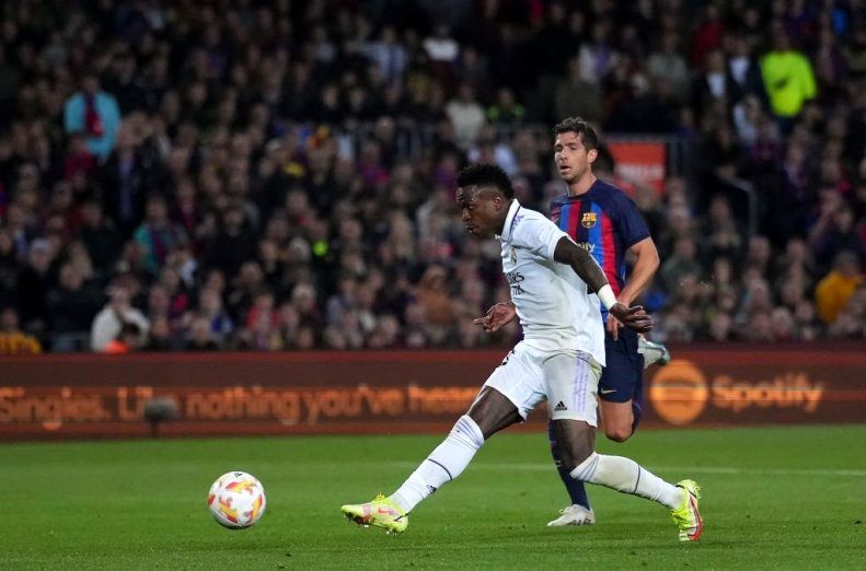 برخلاف بازی رفت که بارسا دفاعی بازی کرده بود، برای راحت کردن خیالش در خانه به رئالیها فشار آورد و تا آستانه گلزنی هم پیش رفت، اما در نهایت با یک ضدحمله در دقایق پایانی نیمه نخست غافلگیر شدند. ضربه وینیسیوس جونیور با وجود دفاع ژول کونده در دقیقه ۱+۴۵ به درون دروازه غلتید تا در پایان این تیم همهچیز مساوی شود.