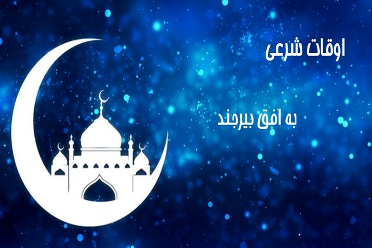 اوقات شرعی بیرجند روز پنج شنبه 24 فروردین ۱۴۰۲ هجری شمسی به شرح زیر است.