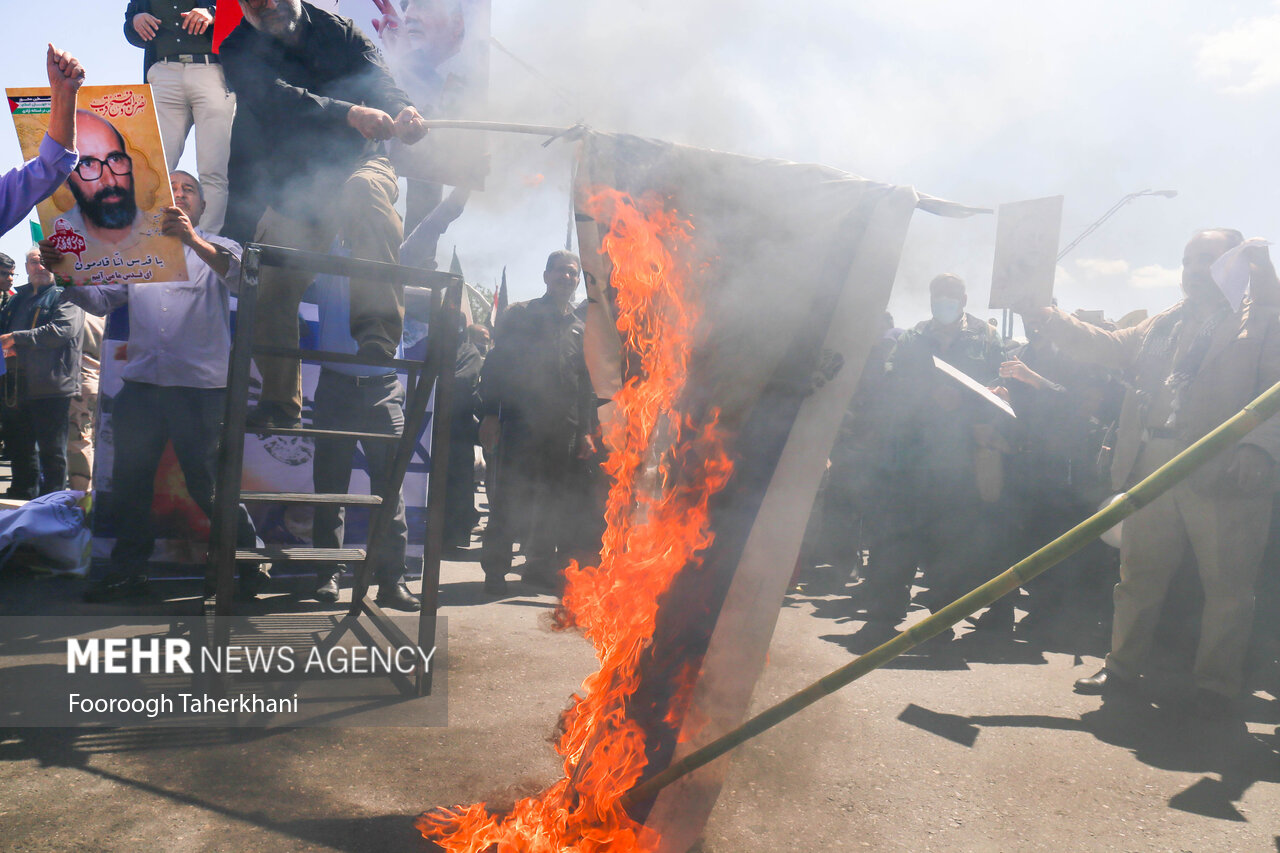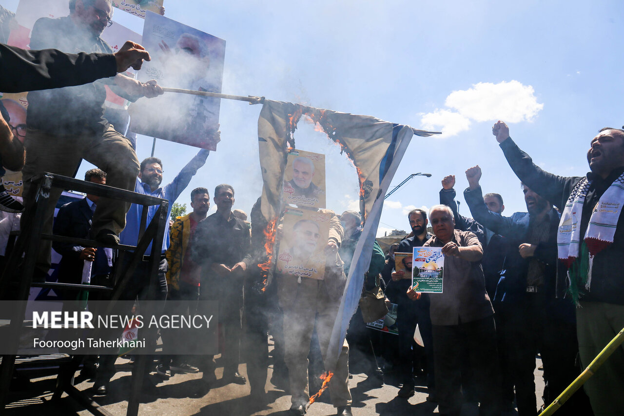 مراسم راهپیمایی روز جهانی قدس با شعار محوری فلسطین محور وحدت جهان اسلام؛ قدس در آستانه آزادی در سراسر کشور صبح امروز جمعه ۲۵ فروردین ۱۴۰۲ با حضور گسترده اقشار مختلف مردم در تهران برگزار شد.