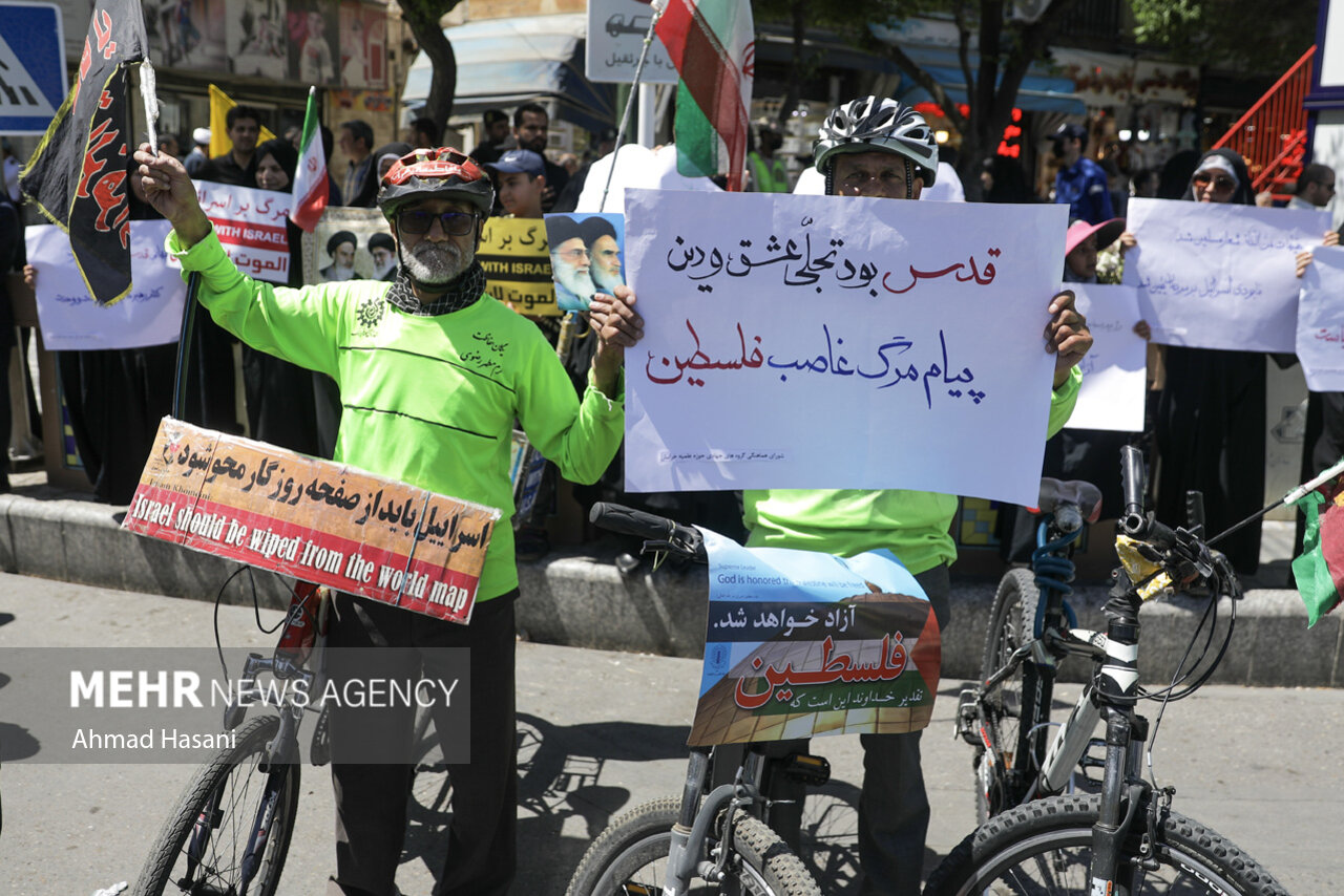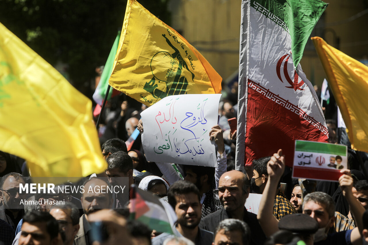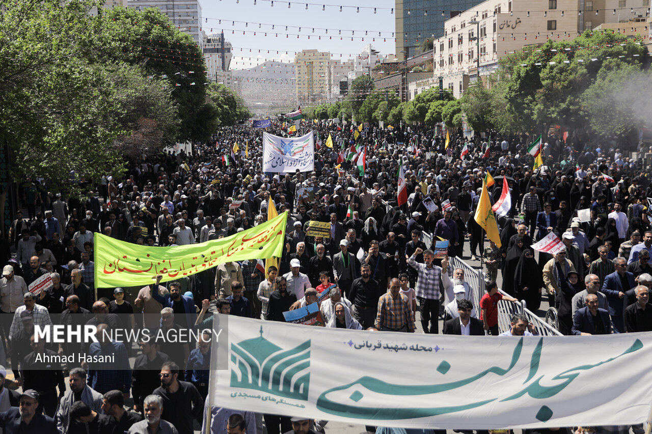 راهپیمایی روز جهانی قدس امروز جمعه از محل میدان ۱۵ خرداد تا حرم مطهر امام رضا (علیه السلام) با حضور گسترده زائرین و مجاورین روزه دار مشهد برگزار شد.