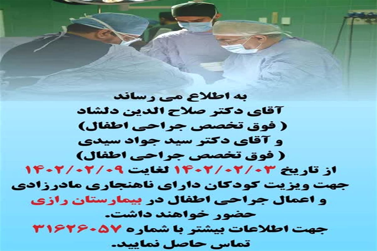 به گزارش خبرنگار سلامت خبرگزاری برنا از خراسان جنوبی، رئیس بیمارستان رازی بیرجند از سفر تیم پزشکی موسسه خیریه محکم به استان بعد از عید سعید فطر خبر داد و گفت: در ادامه سفرهای تیم پزشکی موسسه خیریه محکم به خراسان جنوبی، دکتر صلاح الدین دلشاد و دکتر سید جواد سیدی پزشکان فوق تخصص جراحی اطفال، هفته آینده در بیمارستان رازی حضور مییابند و کودکان دارای ناهنجاری مادرزادی را ویزیت و جراحی خواهند کرد.