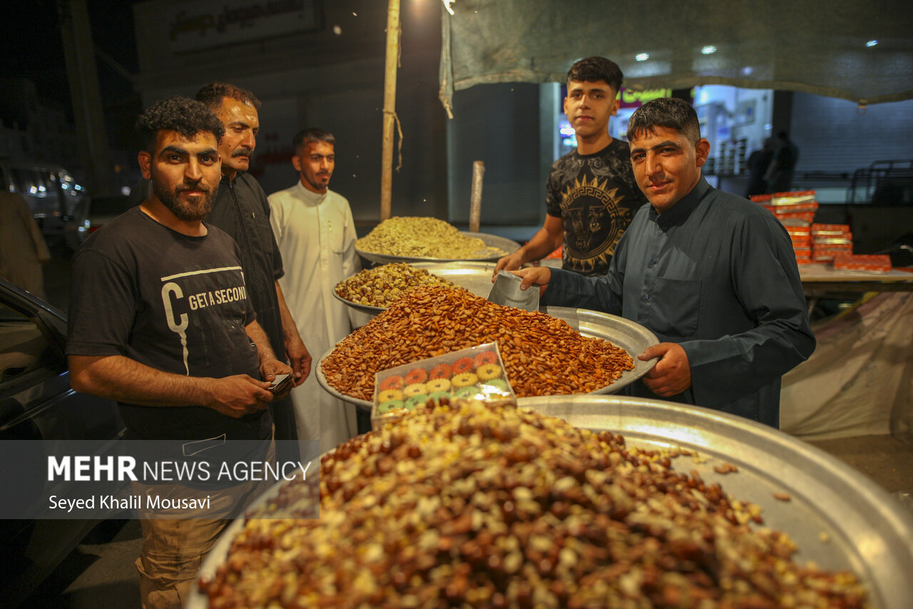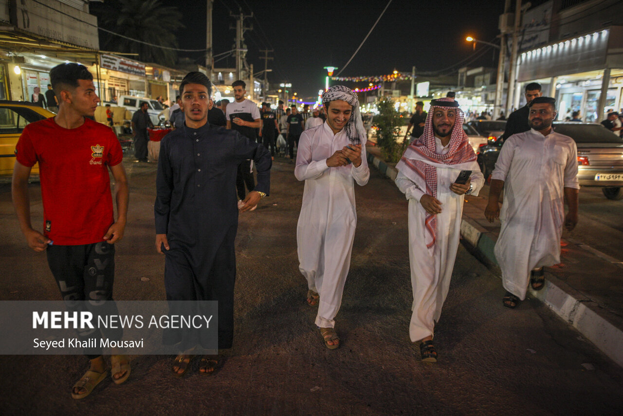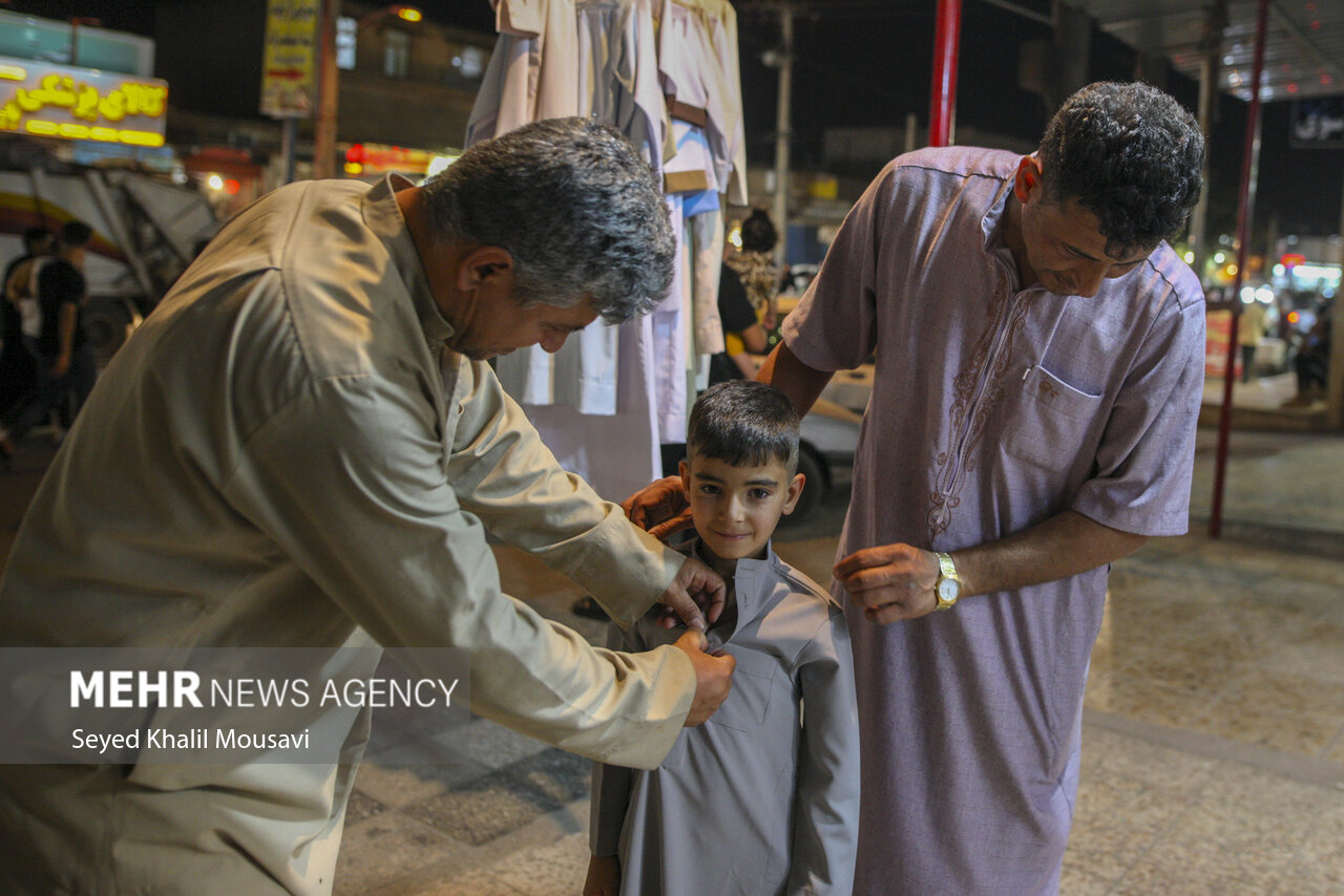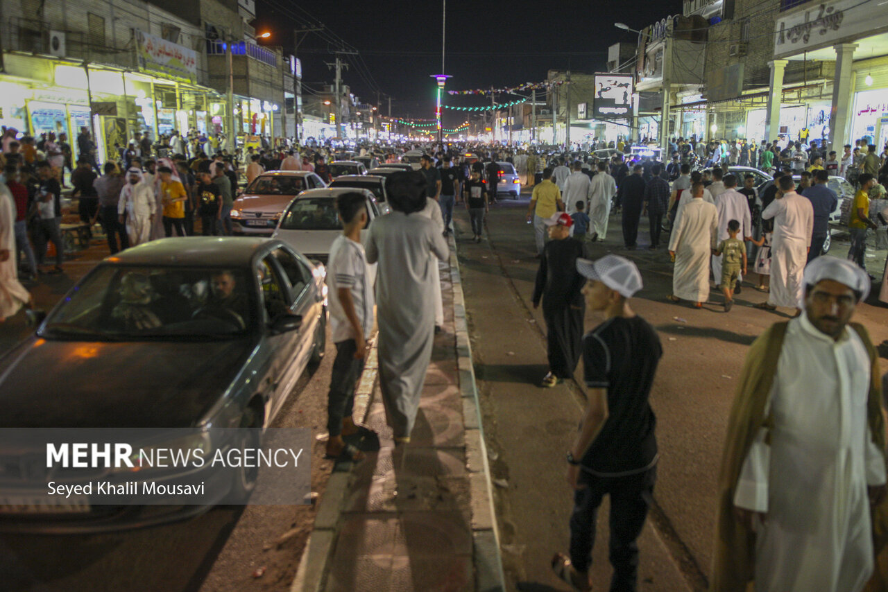 در شب عید فطر هر ساله بازار مناطق عرب نشین اهواز تا صبح بیدار بوده و مردم در رفت و آمد، خرید و شادی و سرور میباشند.