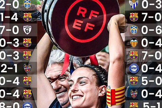 تیم بانوان بارسلونا ۱۰۸ گل در ۲۶ بازی به ثمر رسانده و تنها ۵ گل خورده است.