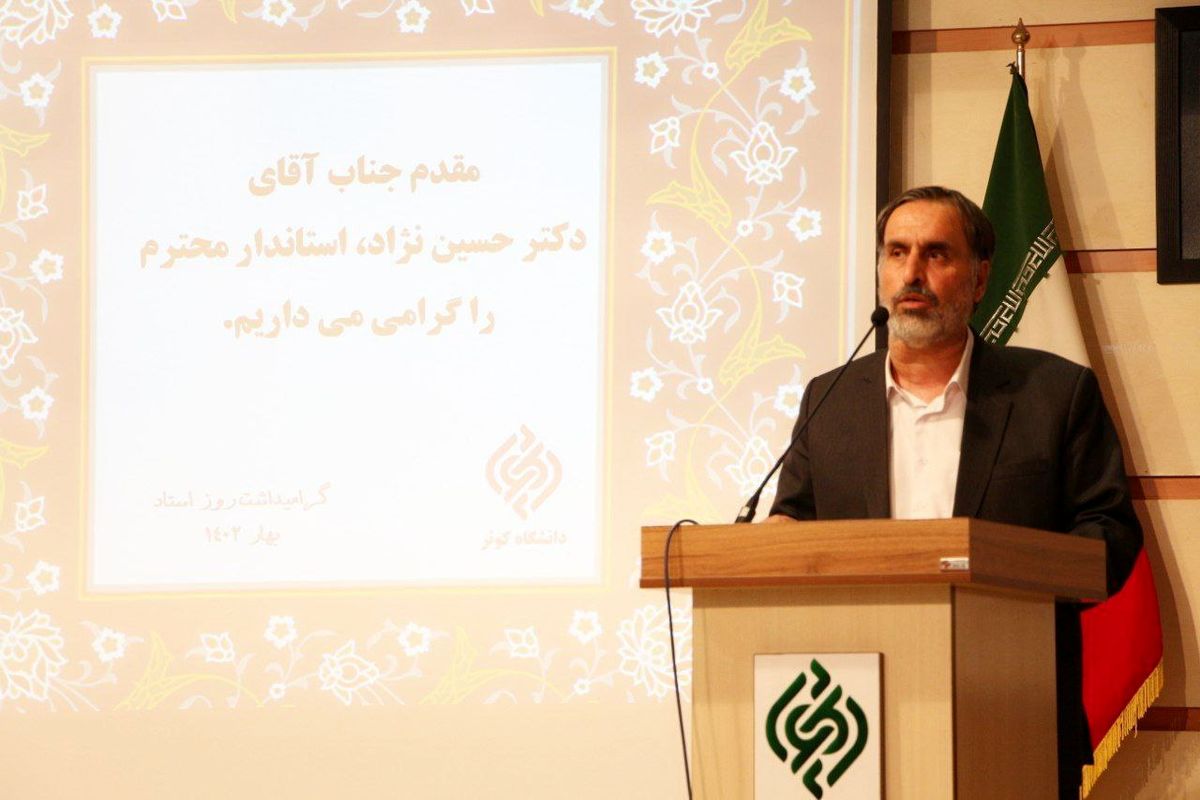 ضرورت تقویت علمی دانشجویان دانشگاه کوثر پیشرو در حفظ ارزش های خانواده ، حرکت در مسیر دانش روز دنیا ، بهره مندی از نظرات اساتید و نخبگان علمی از مهم ترین موضوعات مطرح شده در مراسم گرامیداشت روز معلم و تقدیر از پژوهشگران برتر و سرآمد آموزشی دانشگاه کوثر بود .