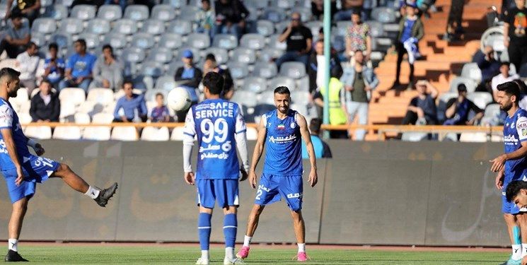 * پیش از ورود آبیها به زمین برای گرم گردن، هوادارن استقلال علیه افشین پیروانی شعار دادند.