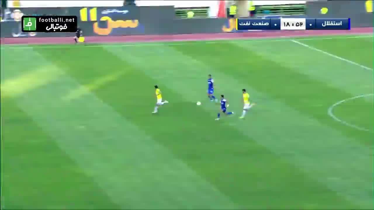 فوتبالی: صحنه مشکوک به پنالتی روی مهدی قایدی در محوطه جریمه صنعت نفت که داور اعتقادی به پنالتی نداشت