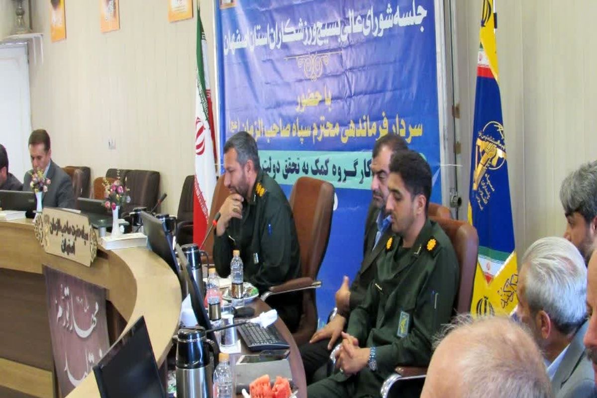 به گزارش خبرگزاری برنا از اصفهان، جلسه شورای عالی بسیج ورزشکاران استان اصفهان امروز جمعه ۱۵ اردیبهشت ماه با موضوع کمک به تحقق دولت اسلامی با حضور سردار مجتبی فدا فرماندهی محترم سپاه حضرت صاحب الزمان(عج)، وحید رجبی مسئول بسیج ورزشکاران، جواد محمدی مدیرکل ورزش و جوانان و از اعضای شورای بسیج ورزشکاران، روئسای هیات های ورزشی استان و روسای باشگاههای فرهنگی ورزشی و همچنین اساتید و بزرگان و پیشکسوتان ورزش استان در سالن جلسات فرماندهی سپاه صاحب الزمان(عج) برگزار شد.