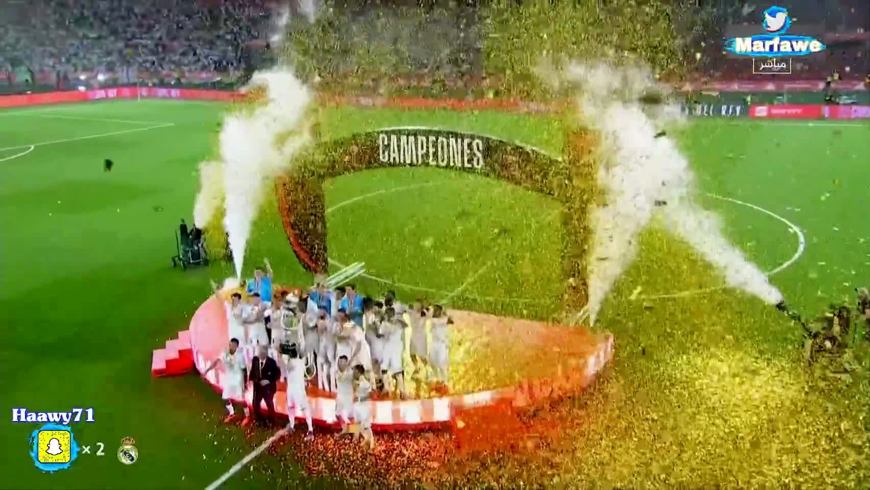 فرهیختگان: جشن قهرمانی بازیکنان رئال مادرید و بالا بردن جام توسط کریم بنزما