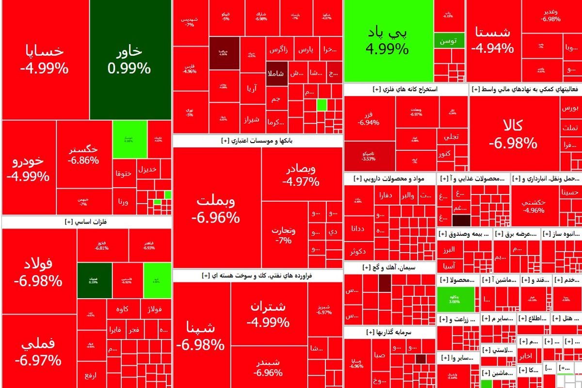نمادهای فولاد، فارس، فملی، کگل، کچاد، شپنا و وغدیر از نمادهای تاثیر گذار منفی بر شاخص کل بورس بودند.